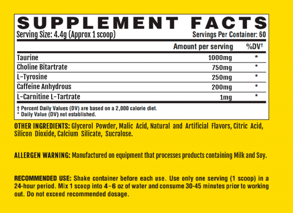 Mezcla un scoop (una medida) de LIPO 6 BLACK TRAINING en 240ml de agua fría y consume 30 a 45 minutos antes del entrenamiento. Usar máximo 2 servicios en un periodo de 24 horas.